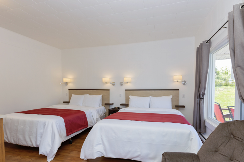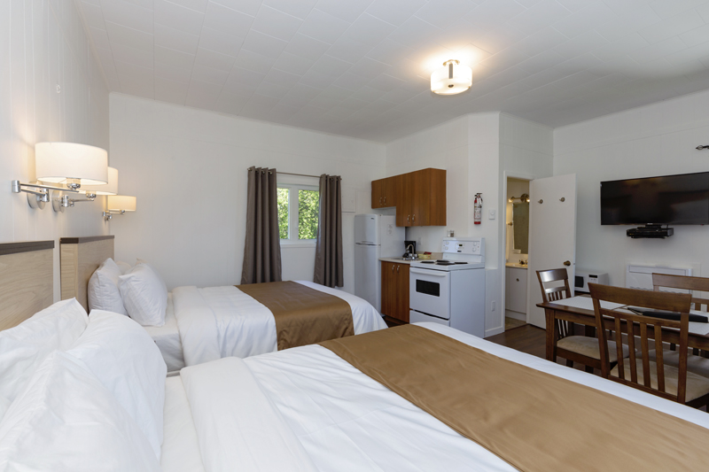 - 23 chalets, avec ou sans cuisinette, entièrement rénovés, avec chambres séparées ou de style studio, tous équipés de réfrigérateur, micro-onde et air climatisé. Pouvant accueillir de 1 à 6 personnes. Balcons individuels.